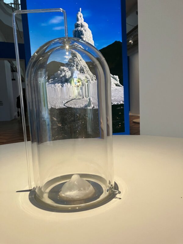 - La création “Tipping point” : fascinant et bouleversant. Près de 2 milliards de personnes dépendent aujourd’hui des glaciers et de la neige pour leur approvisionnement en eau douce. En hommage au glacier islandais Okjökull disparu en 2014, Barthelemy Antoine-Loeff imagine un iceberg sous perfusion, vaine tentative de prolonger une existence condamnée.